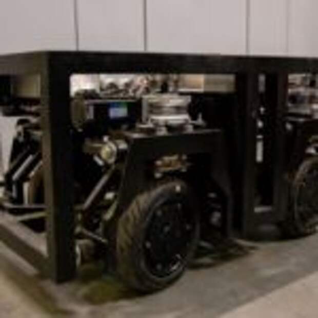 Благодаря модульной конструкции платформа может быть укомплектована аппаратурой для выполнения различных задач. Колесный робот способен перевозить грузы весом до 150 кг.